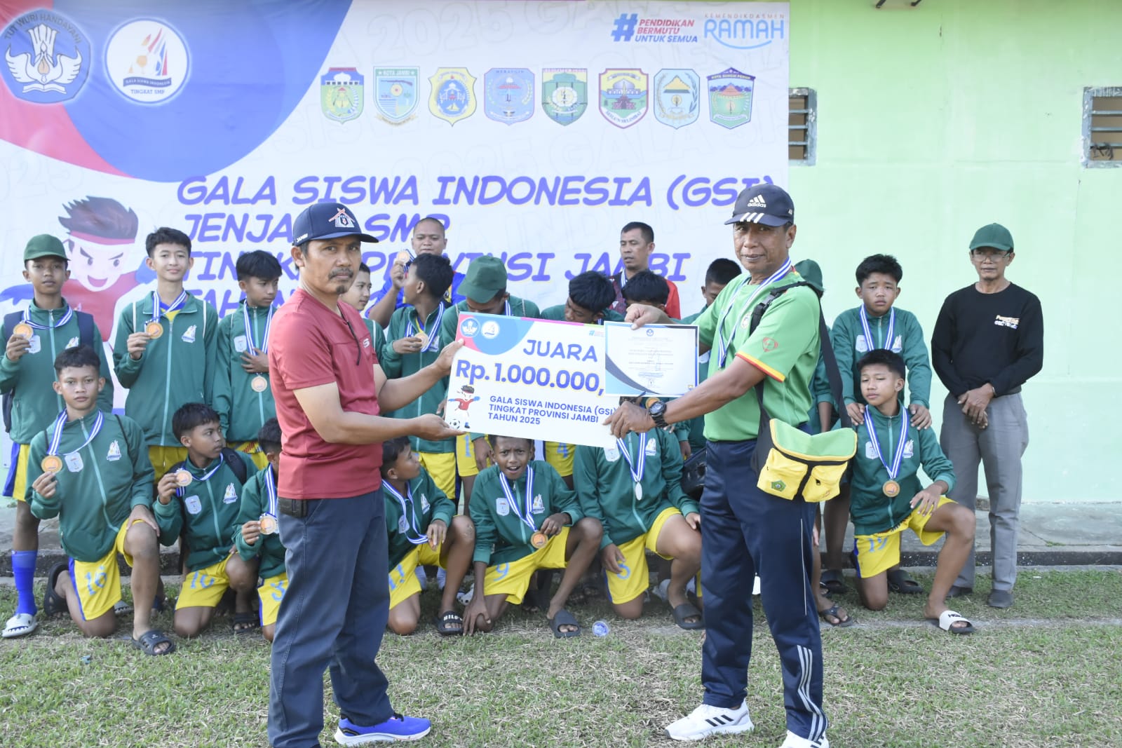 MERANGIN-Jika selama ini Tim Gala Siswa Indonesia (GSI) Kabupaten Merangin absen meraih juara sejak 2017 lalu, kali ini sejarah baru tercipta. Pasalnya, tim pelajar sepak bola GSI SMP tersebut mampu menorehkan prestasinya di tingkat propinsi Jambi. Meski dengan persiapan seadanya, tidak menyurutkan anak didik Karno Dwijanto itu untuk membawa medali ke Bumi Tali Undang Tambang Teliti.